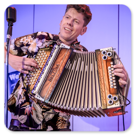 Geboren in Esslingen am Neckar, zuhause auf Mallorca – Fabian bringt mediterranes Temperament und schwäbischen Charme unter einen Hut. Wenn er am Klavier oder an der steirischen Harmonika loslegt, fliegen die Finger, der Schweiß und manchmal auch die Tasten!